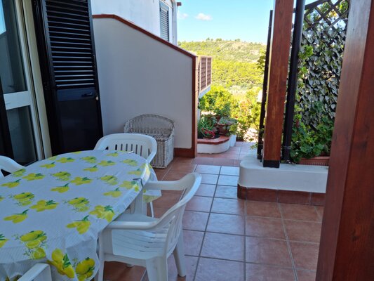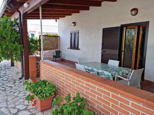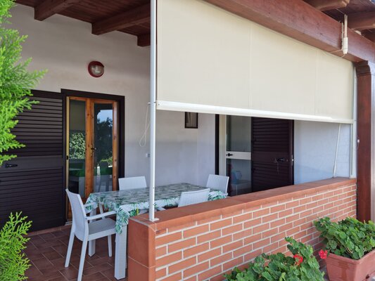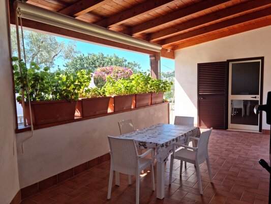 - veranda coperta di circa 15 mq attrezzata con tavolo, sedie e stendino