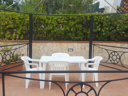 - ampia veranda di circa 50 mq con gazebo, attrezzata con tavolo, sedie, stendino e barbecue